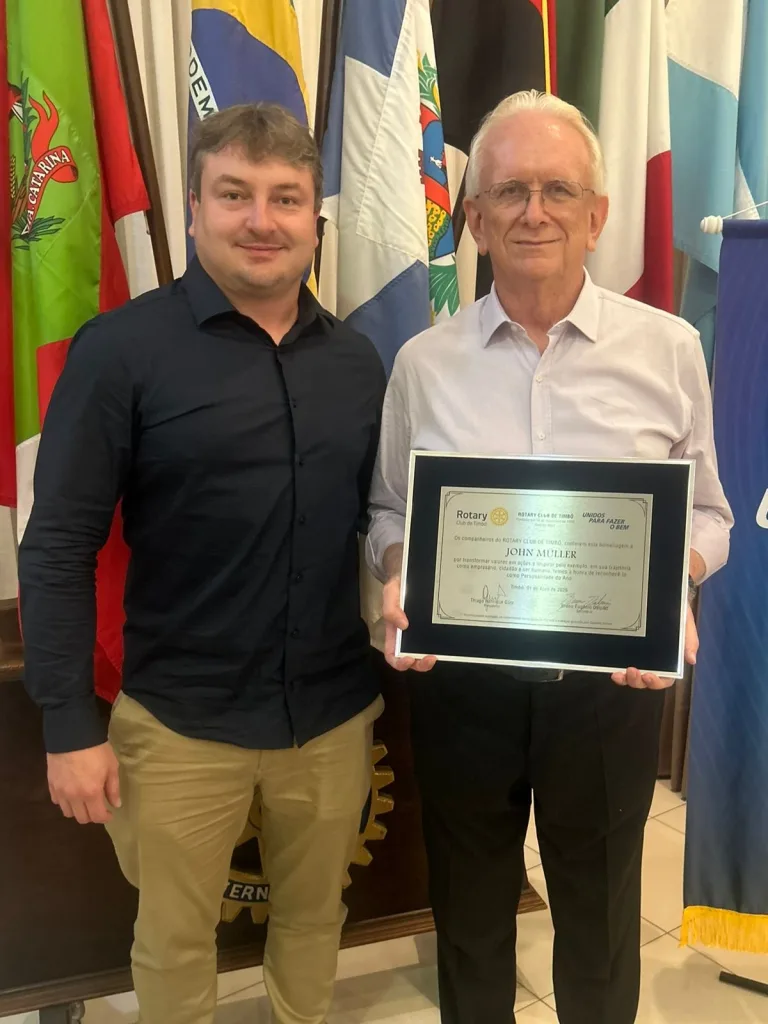 O presidente do Grupo Mueller, John Mueller, popularmente conhecido como Peru, foi homenageado com o título de “Personalidade do Ano” pelo Rotary Club de Timbó. O evento, realizado anualmente pelo clube de serviços, reconhece lideranças que fazem a diferença na comunidade, em diversas áreas.