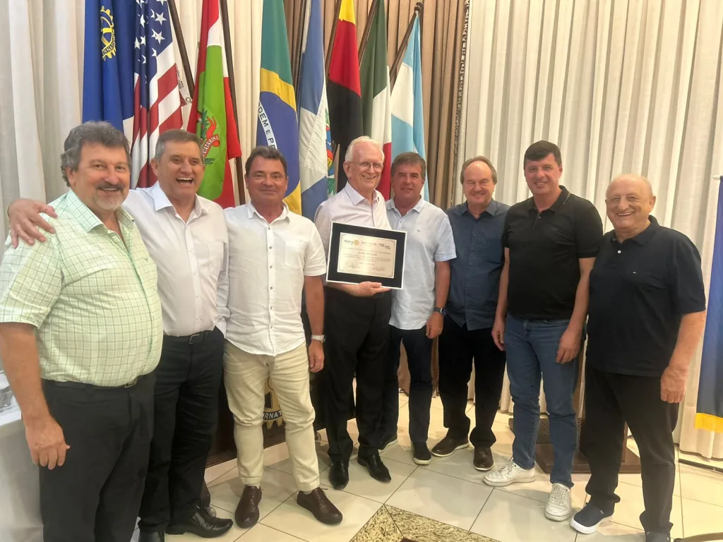 O advogado e jornalista Jeter Reinert, integrante do Rotary, fez a leitura de uma “carta-homenagem” a John Mueller, destacando os motivos de sua escolha, por unanimidade, entre os rotarianos (leia a íntegra nesta página). Emocionado durante a leitura, Jeter destacou que o texto foi escrito de forma espontânea, não recorrendo à inteligência artificial para seu desenvolvimento.