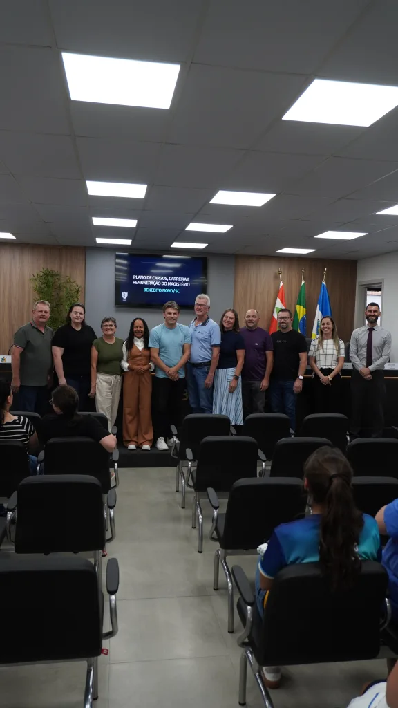 Ao final, os participantes puderam esclarecer dúvidas e aprofundar o entendimento sobre a proposta. Mais do que um novo plano, o que se apresentou foi um caminho possível — construído com diálogo — para reconhecer o papel essencial dos educadores e fortalecer, com responsabilidade, o futuro da educação em Benedito Novo.