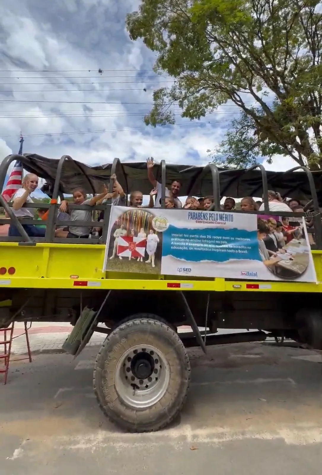 A celebração com o passeio em caminhão do Corpo de Bombeiros simbolizou o orgulho da comunidade escolar pela conquista. O momento reuniu alunos, professores e famílias em uma comemoração que reforça o valor da educação e o impacto positivo das práticas desenvolvidas na escola.