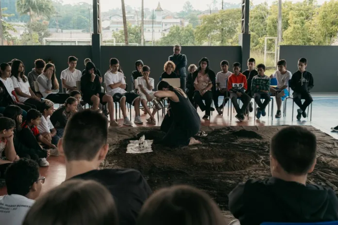 Eveli Preilipper de Jesus, diretora da EBM Juvenal Carvalho, destaca a importância do silêncio para a escuta atenta e a conexão com a peça, ressaltando que muitos alunos só têm acesso a eventos culturais na escola por meio de projetos viabilizados por políticas públicas. A experiência foi impactante, tocando os alunos com a tristeza da saudade da infância e a perda da mãe, sentimentos expressos na peça que refletem a vida de todos.