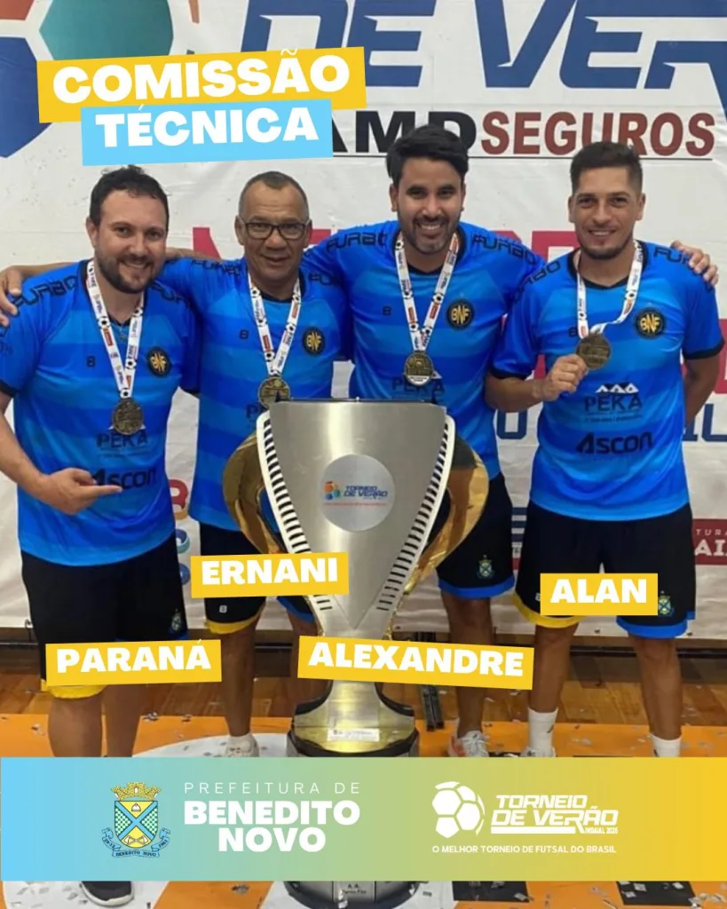 Com foco em mais uma campanha de destaque, o Benedito Novo Futsal entra em quadra com o objetivo de conquistar o tricampeonato do torneio, reforçando sua tradição e força no cenário regional e estadual do futsal.
