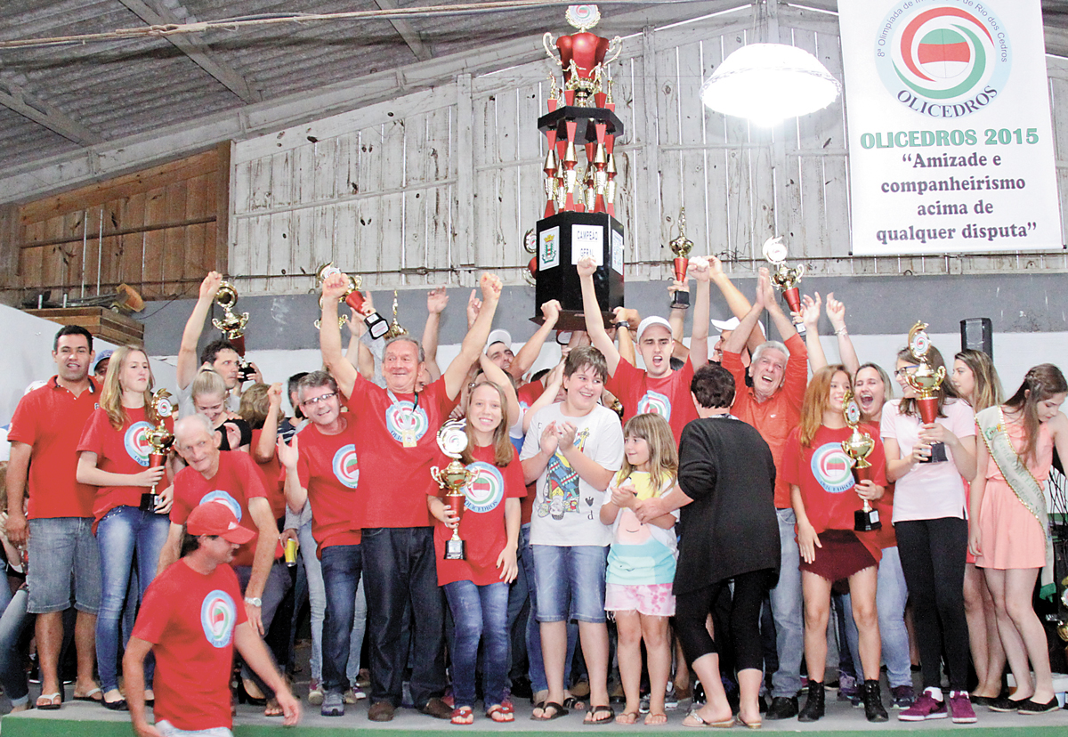 RIO DOS CEDROS – O último dia da 8ª edição da Olimpíada de Integração de Rio dos Cedros(Olicedros) foi marcado pela emoção e virada de placar na classificação Geral da competição da Secretaria de Esportes da Municipalidade local. O domingo, dia 29, ficará na memória dos componentes das 11 equipes participantes do certame iniciado em 17 de outubro com a disputa de 48 troféus (24M/24F). E, coube ao atletismo, no sábado, dia 28, e principalmente os jogos de mesa, no domingo, definir o resultado final que apontou o título para o Cruzeiro, que chegou novamente ao topo do pódio depois de 12 anos. O Centro, que liderou grande parte dos 42 dias de disputas acabou em segundo lugar, com 273, apenas seis pontos a menos que o bairro vencedor. Cedro Alto, com 212, e Doloratta (Dores), 195, acabaram em terceiro e quarto lugares respectivamente. Numeroso público participou do cerimonial de encerramento e premiação no Centro de Eventos Alfredo Berri. O diretor esportivo riocedrense Antonio Carlos Facchini, o Tonho, disse que a definição do título Geral foi algo extraordinário, de pura emoção: ”o título foi decidido apenas nos detalhes das últimas disputas. Todos estão de parabéns pela maravilhosa competição que fizeram”, frisou Tonho
