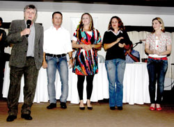 O presidente da FME de Timbó, Clóvis Nagel Gütz, em seu discurso, fez um breve relato das atividades e conquistas das 42 modalidades apoiadas pela entidade, agradeceu a dedicação de todos dizendo que este ano houve mais incentivos com as associações  e a iniciativa privada, com mais parcerias. ?Foi um ano trabalhoso, porém altamente proveitoso, com ótimos resultados, fruto exclusivo dos atletas e dirigentes envolvidos. Já estamos nos dedicando para que 2011 seja ainda melhor?, destacou o dirigente. Um saboroso coquetel foi degustado após os atos protocolares. Para finalizar, o próprio presidente abrilhantou  a noitada, desempenhando  a sua veia artística com algumas apresentações musicais, que foram acompanhadas festivamente pelos presentes. Confira alguns dos homenageados.