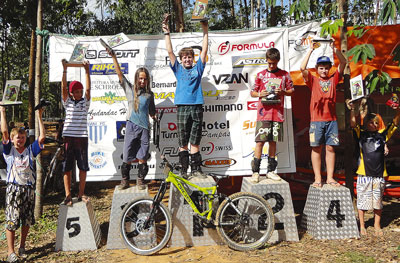 BENEDITO NOVO – Uma excelente temporada. Assim pode ser avaliada a performance da jovem equipe de Benedito Novo (foto) no Campeonato Estadual de Downhill 2012 da Federação Catarinense de Mountain Bike (FCMTB), encerrado no último final de semana, em Schroeder. O destaque na última etapa ficou por conta do primeiro lugar do piloto Renan Schimidt (foto D) na categoria Infanto Juvenil. O resultado somado a mais outros cinco ouros em etapas anteriores rendeu ao jovem biker beneditense o título do Estadual de 2012, que foi disputado em dez etapas. Já Ricardo Voltolini chegou em terceiro na Estreante Rígida, posto que o deixou igualmente em terceiro no Ranking. Cleyton Schmidt foi nono na sub 23 em Schroeder e acabou em quinto na classificação final no Estadual. O biker Matheus Neitzke chegou em segundo lugar nesta etapa e foi quinto no Ranking Juvenil. O quinto lugar de Ariel Tomasoni e oitavo deElvis Maus na Estreante Full completaram a participação da equipe em Schroeder.
