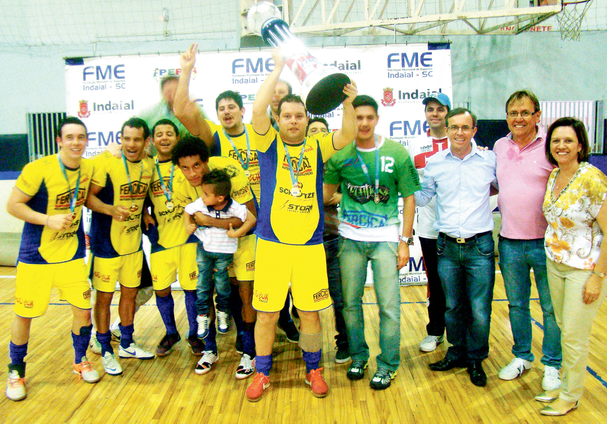 INDAIAL – O 4º Campeonato Municipal de Futsal de Indaial – Taça Nacional 1988-Grandes Campeões”, conheceu no último sábado, dia 20, no Ginásio Sérgio Luis Petters os vencedores das 10 categorias em disputa. Destaque para o título da Fercical Futsal (foto) no Adulto Masculino, que na decisão passou pelo Prensa/DJ Motos (campeão em 2013) por 7 a 5, e ficou com o caneco do certame promovido e coordenado pela FME local. O Vale do Selke/Metalúrgica Fey passou pelo Mundial por 10 a 4 e ficou com a terceira colocação.