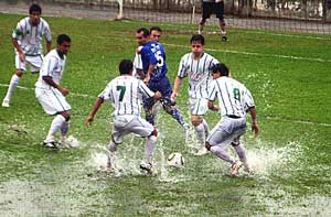 Timbó- Um jogão de bola desses não merecia a decisão do árbitro Rodrigo da Silva em confirmar a partida para ás 15h30min nesse chuvoso domingo em Timbó. Quando Água Verde e Atlético Pomerodense entraram no gramado do Estádio Municipal quase ninguém dos pouquíssimos torcedores presentes acreditou que o confronto aconteceria naquelas condições. O árbitro alegou que inúmeros jogos já haviam sido realizadas em condições até piores,e por isso Silva deixou de lado o bom senso e confirmou a partida. “ A integridade física dos atletas foi deixada de lado. Data e local não faltavam caso a transferência fosse confirmada”, disse Wiegold Starke, dirigente do verdão timboense, inconformado com a decisão da arbitragem .“Poderíamos jogar qualquer dia da semana a noite no Complexo. Pelo menos teríamos um confronto mais justo, frisou Starkinha.
