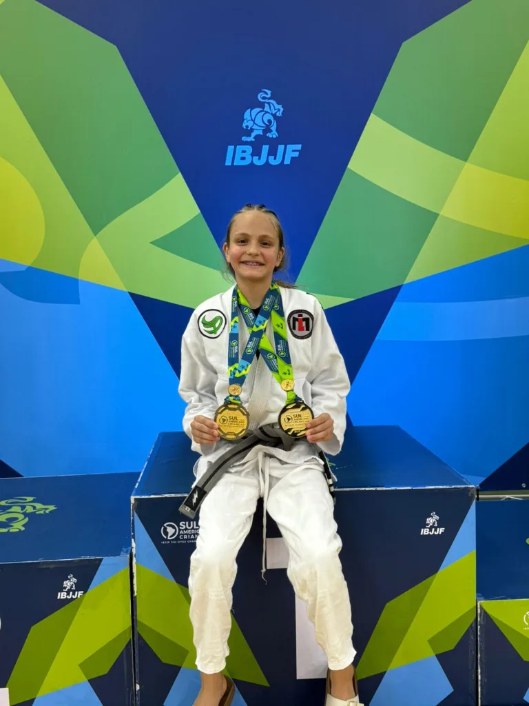 Foram duas lutas duríssimas, contra adversárias de alto nível — algumas, inclusive, até 12 quilos mais pesadas. Na primeira, a vitória veio por finalização, no triângulo. Na segunda, após um combate intenso, a decisão garantiu o ouro e confirmou o bicampeonato sul-americano.