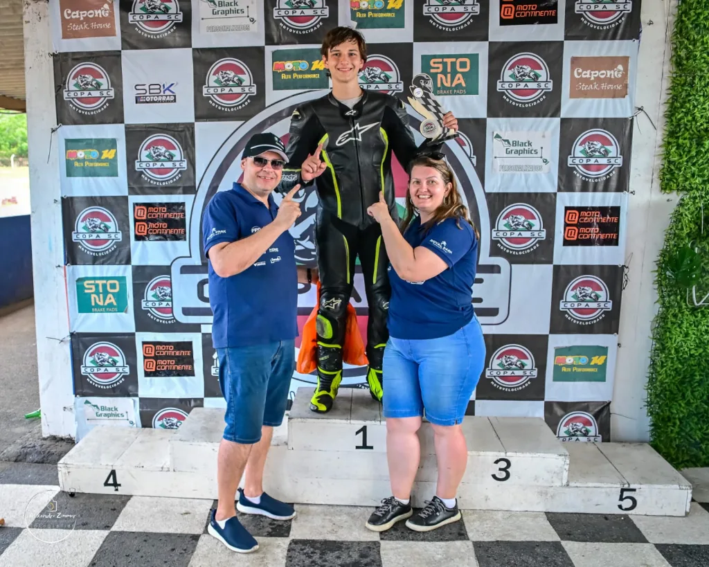 O piloto Daniel Tomelin, de 15 anos, que tem origens no Vale do Itajaí encerrou o calendário de 2025 com dois importantes resultados no Campeonato Catarinense de Motovelocidade, consolidando-se como um dos principais nomes da nova geração do esporte. A etapa final, disputada neste domingo (7 de dezembro) no Kartódromo dos Ingleses em Florianópolis, coroou o jovem atleta com o título de campeão da Copa SC na categoria PRO OPEN e com o terceiro lugar na categoria GP400 no Campeonato Sportbay Catarinense de Motovelocidade.