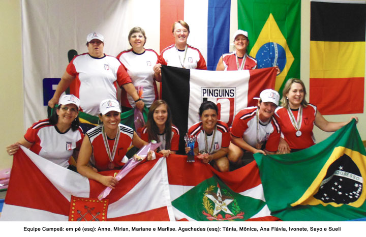INDAIAL – A  equipe da SRD Pinguíns/FME de Indaial retornou na última  semana da França, onde disputou de 7 a 9 de junho, na cidade de Metzervisse, a Copa Mundial de Clubes Campeões de  bolão 16 feminino-“Welt Cup”. Após enfrentar as melhores equipes do planeta, as indaialenses, que representaram a Confederação Brasileira de Bochas e Bolão (CBBB),  trouxeram na bagagem a honrosa  medalha de bronze. A equipe formada pelas atletas derrubou 2.946 pinos. O time contou com as bolonistas (foto) Anne, Miriam, Mariane, Marlise, Tania, Monica, Ana Flávia, Ivonete, Sayo e Sueli.O Preussen Lünen, da Alemanha, foi campeão, totalizando 3.228 pinos, seguido pelo clube Joker 86, de Luxemburgo, em segundo, com 3.114.  O Hendricks -, da Holanda acabou na quarta colocação, com 2920.