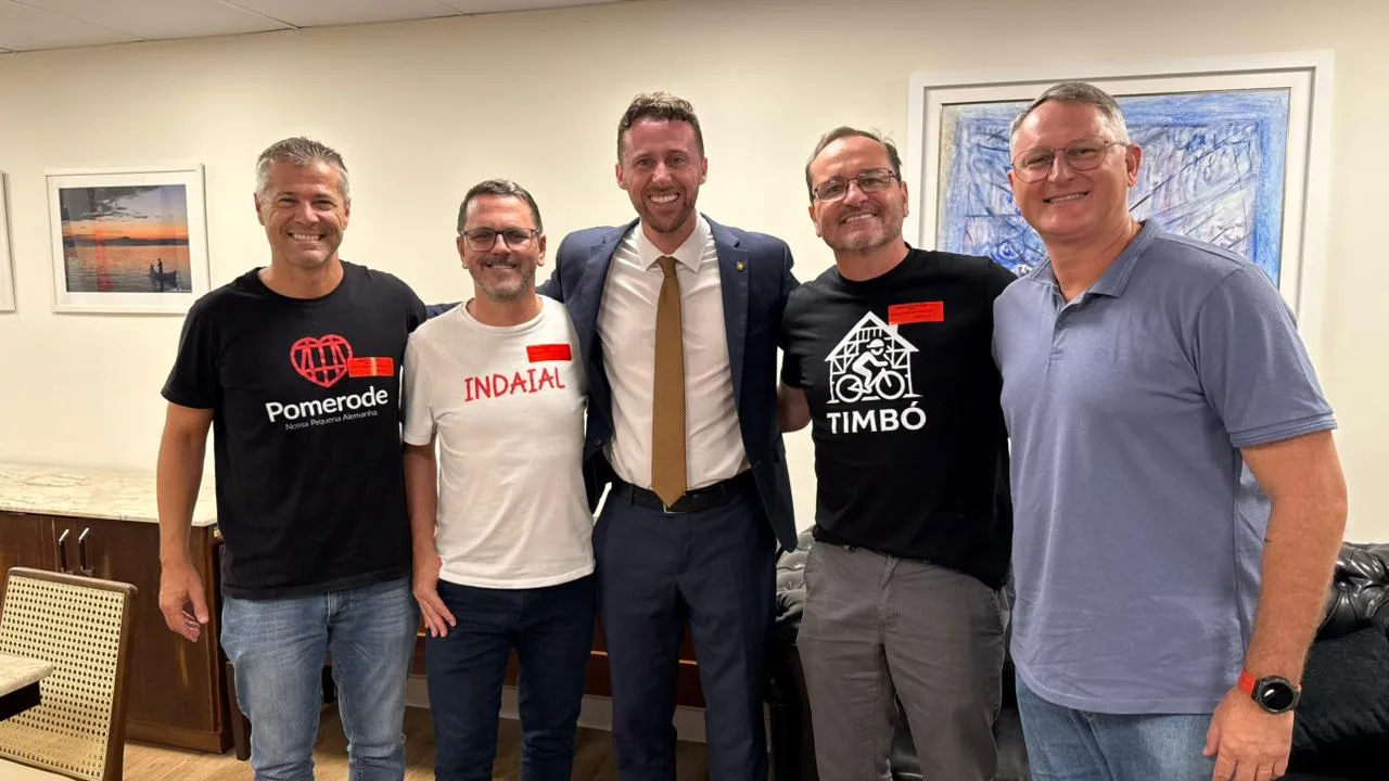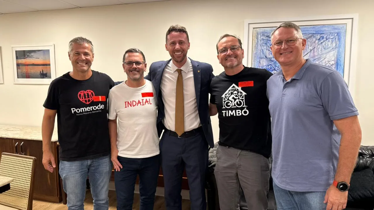 Os prefeitos de Timbó, Pomerode e Indaial estiveram em Florianópolis, nesta terça-feira, dia 24 de fevereiro, para articular a candidatura conjunta do Médio Vale para sediar o JASC 2027. A agenda institucional teve como foco o fortalecimento do esporte regional e a busca por investimentos para os municípios.