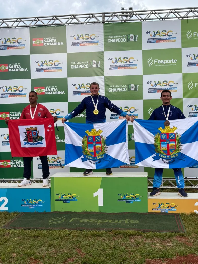 No atletismo, os principais destaques vieram no lançamento de dardo masculino, com Eduardo Radatz conquistando a medalha de ouro, ao atingir a marca de 64,58 metros, e Alex Yuri Boher garantindo o bronze, com 61,84 metros. No feminino, Camila Wessler foi vice-campeã nos 800 e 1.500 metros, enquanto Rafaela Iavorsk conquistou o segundo lugar no heptatlo. Timbó também assegurou o 2º lugar no revezamento misto, reforçando a força coletiva da equipe.