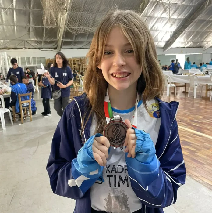 Foi no Xadrez que Timbó conquistou sua primeira medalha da competição. Jennifer Kneidl conquistou o terceiro lugar no Xadrez blitz feminino, tabuleiro 2.