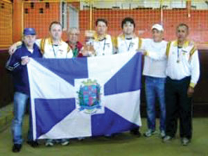 JOINVILLE – Numa final atípica a equipe de bocha rafa vollo masculina de Timbó (foto/direita) venceu Jaraguá do Sul por dois a um, e depois de três anos, volta a conquistar o troféu de campeão da Etapa Regional Leste Norte dos Jogos Abertos de Santa Catarina, que este ano acontece em Joinville.