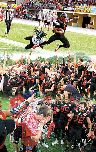 TIMBÓ – Final à vista! Ninguém segura o T-Rex no 6º Torneio Touchdown, o Campeonato Brasileiro de Futebol Americano desta temporada. Neste sábado, dia 29, no Complexo Esportivo de Timbó lotado, o clube timboense atropelou o Botafogo Reptiles/RJ por 71 a 20 e garantiu presença na decisão do certame no dia 13 próximo, no Ibirapuera, em São Paulo. É a primeira vez que o T-Rex chega a uma final pois nos últimos dois anos o clube ficou pelo caminho (em 2012 foi eliminado nas semifinais e ano passado caíu nas quartas de final). O Adversário na decisão será o Vasco da Gama Patriotas, do Rio de Janeiro, que eliminou o Paraná HP na outra semifinal, por 13 a 03.