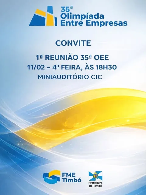 A primeira reunião da edição 2026 será realizada hoje, dia 11 de fevereiro, às 18h30min, no mini auditório do Centro Integrado de Cultura (CIC) de Timbó, marcando o início dos preparativos da maior competição poliesportiva empresarial da cidade.