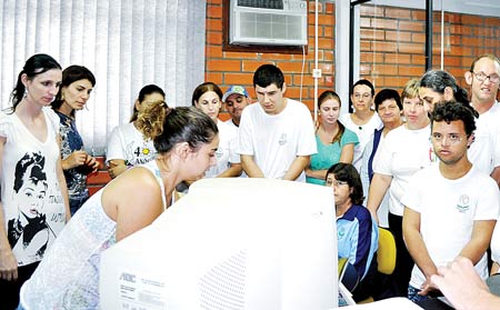Após serem sanadas as dúvidas dos alunos no setor de redação, o grupo seguiu para a área de diagramação: local onde o jornal, efetivamente é finalizado. Os profissionais informaram aos jovens, a forma como é feito o layout das páginas do jornal, o tratamento da imagem, e o fechamento dos arquivos para a impressão.