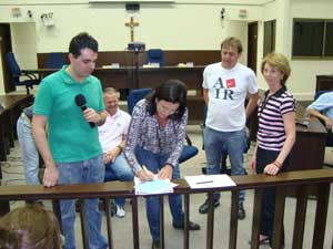 Eles também ressaltaram a importância do momento político, pois além da pré-candidata Angela Amin estar com bons índices nas pesquisas, ela é indaialense e tem suas raízes no Vale do Itajaí. Em seguida, Angela Amin iniciou sua participação, abonando as fichas dos novos filiados e prosseguiu a reunião informando aos amigos e filiados presentes, que colocou seu nome à disposição como pré-candidata ao Governo, pois sente, pelo contato com as pessoas pelo Estado a fora, a vontade de mudança.