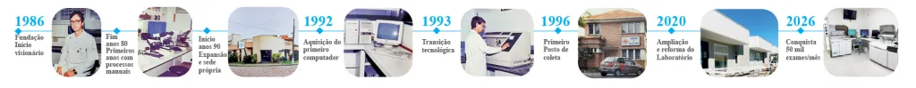 No início, o laboratório funcionava junto ao Hospital e Maternidade Oase. Com o crescimento da demanda e o fortalecimento do trabalho, surgiu a oportunidade de construir a sede própria, em sociedade com quatro médicos. Desde então, a estrutura continuou se ampliando, acompanhando o avanço da medicina e as necessidades da comunidade.