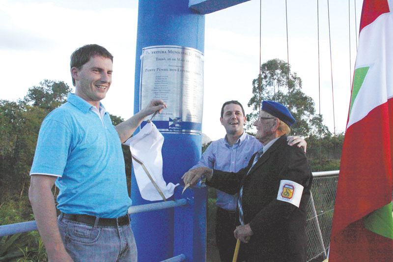 Já o prefeito de Rio dos Cedros, Fernando Tomaselli, frisou que são muito felizes em homenagear esses 30 homens que, em 1942, estiveram lutando ao lado das forças aliadas na Segunda Guerra Mundial. “Agora, posso afirmar que a Ponte dos Expedicionários une os municípios de Timbó e Rio dos Cedros com mais qualidade, sem deixar de lembrar que essa é uma importante obra que vai facilitar a vida das famílias dessa região, que diariamente precisam estar numa ou noutra cidade”, destacou Tomaselli.