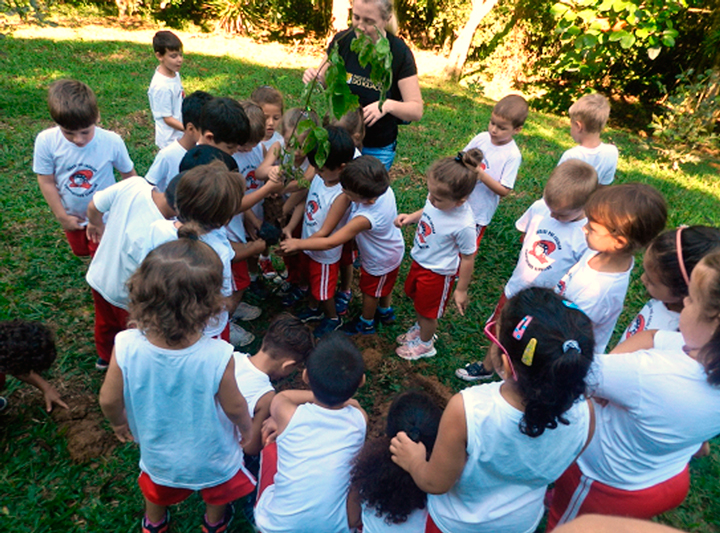 De acordo com ela, os alunos puseram a mão literalmente “na massa” quando foi cavado um buraco e plantado um pé de ingá.