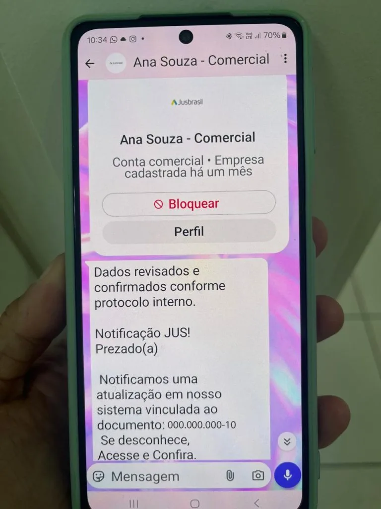 Golpistas estão sempre desenvolvendo meios para enganar e fraudar o consumidor. Desta vez, o PROCON/SC recebeu denúncias de golpes que envolvem o site Jus Brasil. Golpistas utilizam a marca da plataforma para entrar em contato via WhatsAp, enviar links maliciosos e coletar dados sensíveis.