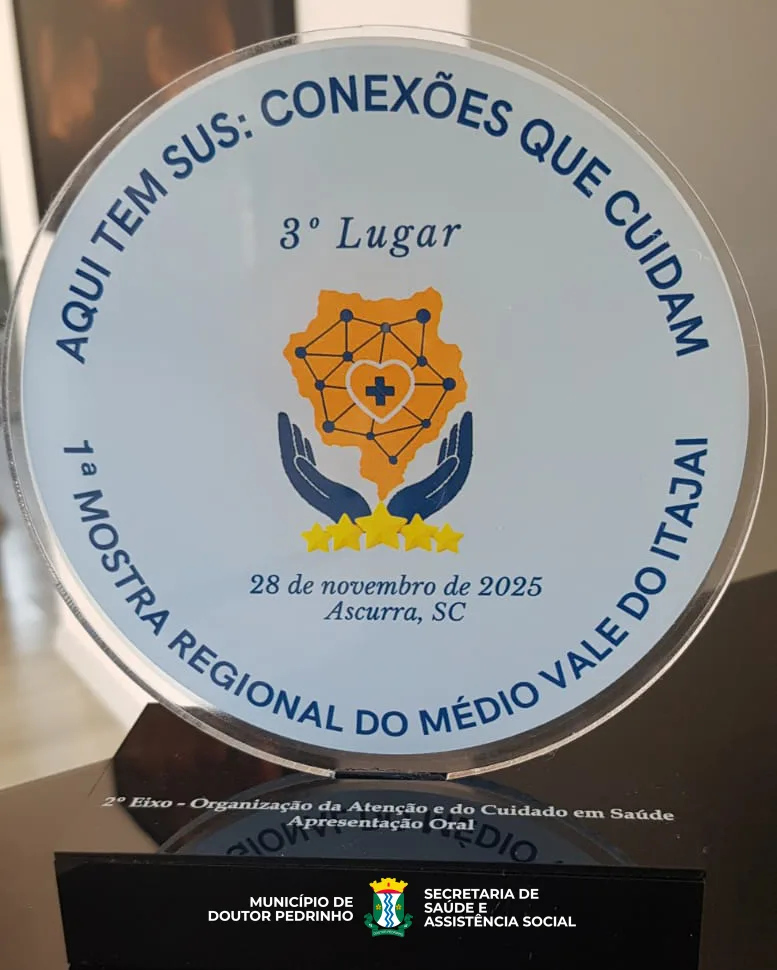 Doutor Pedrinho conquista prêmio na Mostra Regional do Médio Vale – Aqui tem SUS: Conexões que Cuidam, reforçando o compromisso do município com a qualidade da saúde pública. O reconhecimento ocorreu durante a 1ª edição do evento, realizada em Ascurra, e destacou boas práticas desenvolvidas na rede municipal de saúde.