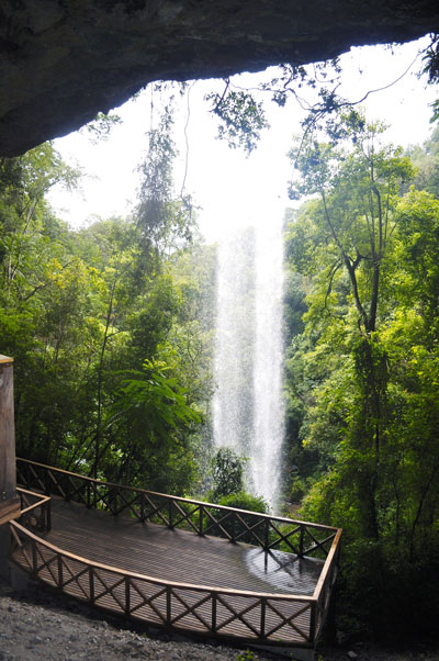 Esta gruta se apresenta com uma ampla sala, escavada na rocha, apresentando em sua parte frontal, uma queda de água cristalina de 23 metros.
