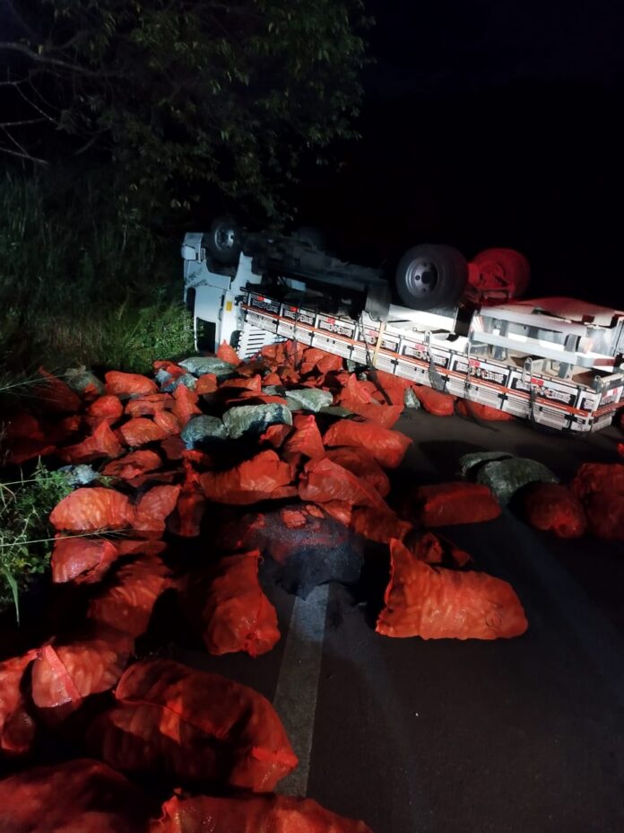 Um caminhão carregado de pepinos tombou na noite de terça-feira, dia 11 de fevereiro, em Doutor Pedrinho. O Corpo de Bombeiros Militar foi acionado para atender a ocorrência por volta das 20h40min.