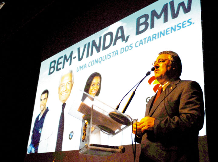 TIMBÓ – “A instalação da fábrica da BMW em Santa Catarina vai representar uma nova era para a economia catarinense. O setor automotivo representa cerca de 20% do PIB da economia brasileira e, com a BMW, o Estado vai se destacar com muita força e qualidade nessa área tão competitiva”. Com essa frase o governador do Estado, Raimundo Colombo avalia a oficialização da implantação da primeira fábrica da BMW, na América Latina.