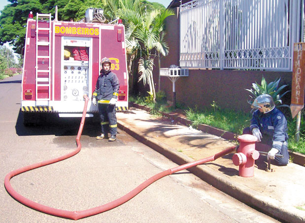 De acordo com Daminelli, o hidrante funciona através de um registro que é acionado e libera água para uma de suas três saídas. “Nessas saídas, instalamos um adaptador para que as mangueiras possam ser ligadas ao hidrante. Essas mangueiras são ligadas ao caminhão para que abasteçam o tanque da água. Assim, o caminhão pressuriza a água para as mangueiras de combate.