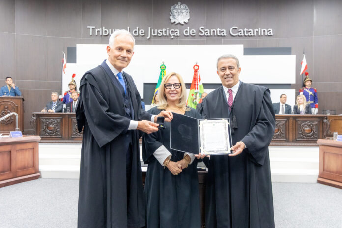 A desembargadora Maria do Rocio Luz Santa Ritta, presidente cessante, mencionou os desafios das Eleições Municipais 2024 em seu discurso de despedida. O diretor-geral do TRE-SC, Gonsalo Ribeiro, fez a leitura do termo de posse, e os novos gestores prestaram compromisso.