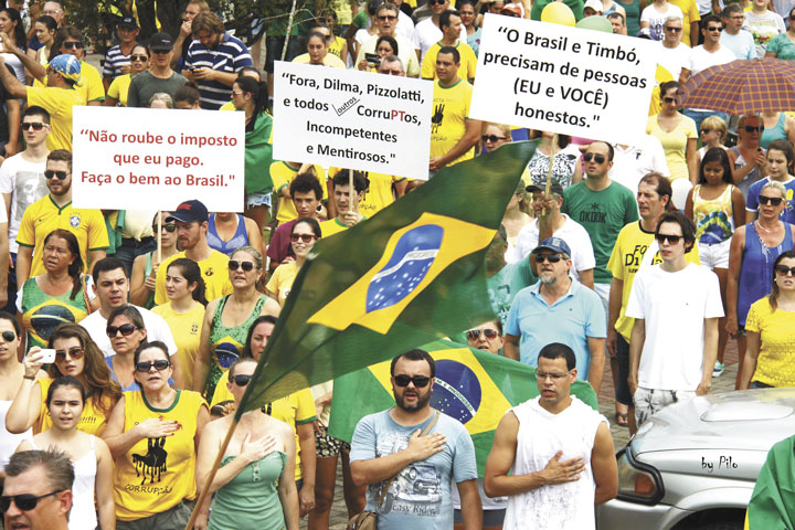 TIMBÓ – O dia 15 de março ficará na história do Brasil por levar às ruas das mais diversas cidades brasileiras, milhares de moradores que uniram-se ao movimento contra a corrupção. No pacote de reivindicações também está o descontentamento com o atual governo da presidente Dilma Rouseff, a crise econômica e a não realização de uma reforma política. Em todas as cidades as manifestações foram organizadas pelas redes sociais, sendo apartidárias, até porque a maioria das agremiações está envolvida com corrupção. Todos os envolvidos na realização das mesmas, tanto empresas, entidades de classe, associações e comunidade, querem mudanças para melhorar a qualidade de vida de modo geral.