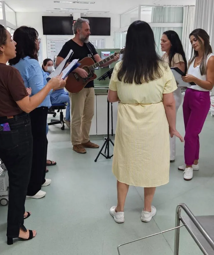 A ação faz parte do Projeto EnCantar, desenvolvido pelo Hospital e Maternidade Oase, por meio do Grupo de Trabalho de Humanização (GTH), em parceria com a Fundação de Cultura e Turismo de Timbó. A proposta é clara: aproximar o cuidado técnico do acolhimento, usando a música como ponte entre a ciência e o afeto.