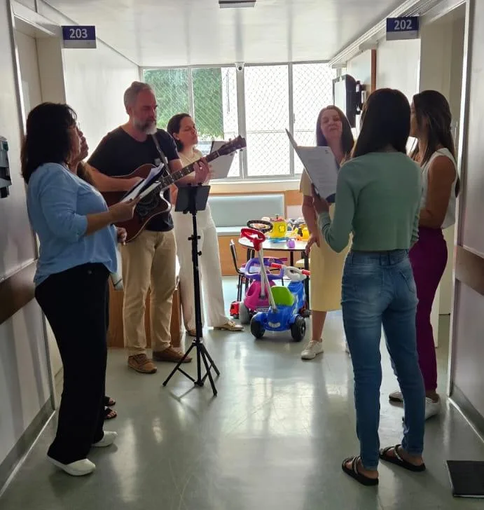Ao final, João Neumann Jr. resumiu a experiência. “Cantar pelos corredores do hospital faz a gente sentir o quanto a vida é maravilhosa. É uma alegria imensa poder levar esperança, carinho e alegria. Cada olhar e cada sorriso nos fazem querer ainda mais bem, especialmente aos pacientes. Semear o amor é transformar dor em esperança”, destacou.