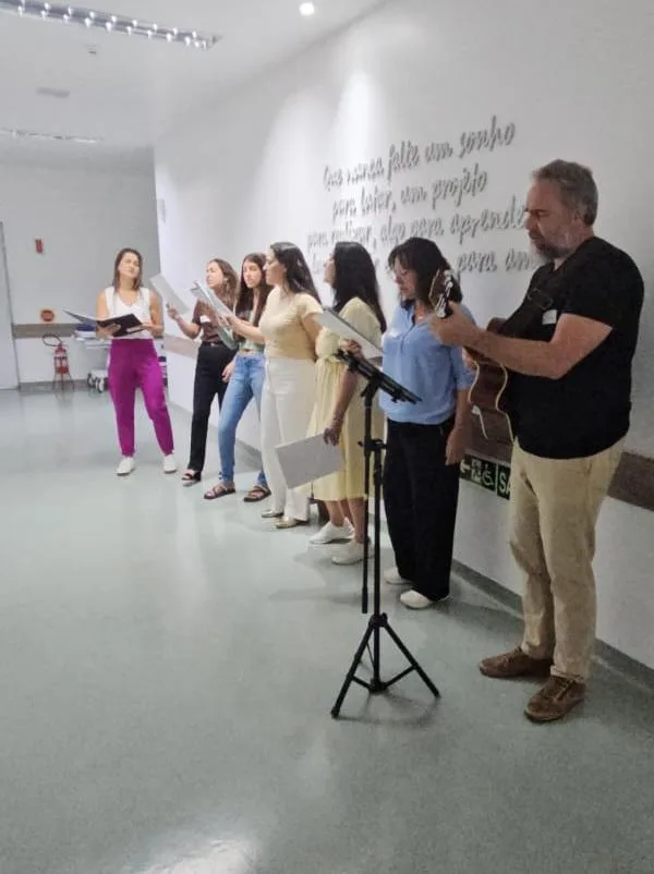 O momento foi conduzido pelo professor de técnica vocal da Fundação de Cultura de Timbó, João Neumann Jr., acompanhado de suas alunas. Entre atendimentos e a rotina intensa do hospital, a música criou uma pausa sensível. Aos poucos, os acordes foram suavizando olhares, acalmando corações e despertando sorrisos.
