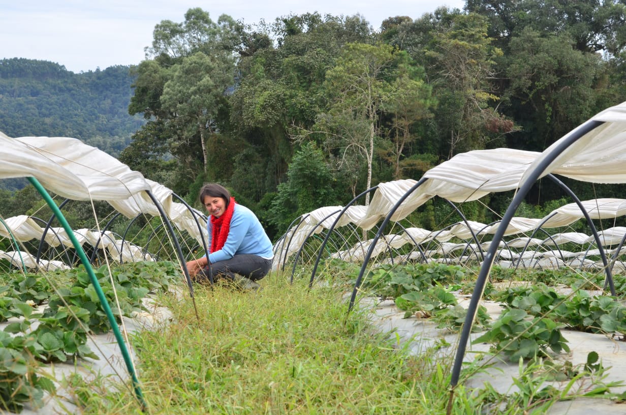 Um desses produtores que fazem parte da ProOrg, por vender seus produtos com certificação de Orgânicos, é a família de Vanusa e Rodrigo Kertischka, proprietários do Sítio Colina, em Doutor Pedrinho. Desde a semana passada, Vanusa já está com seu popular chamariz: “Olha o morango fresquinho, vermelhinho e da hora”.