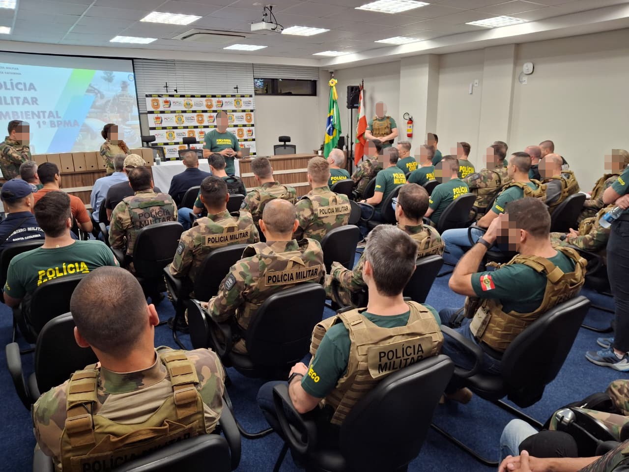 Para o cumprimento dos mandados, foram mobilizados 52 integrantes do GAECO e 75 Policiais Militares da Polícia Militar Ambiental e 9 Bombeiros Militares, totalizando 136 agentes, que estão diligenciando em nove cidades do estado.