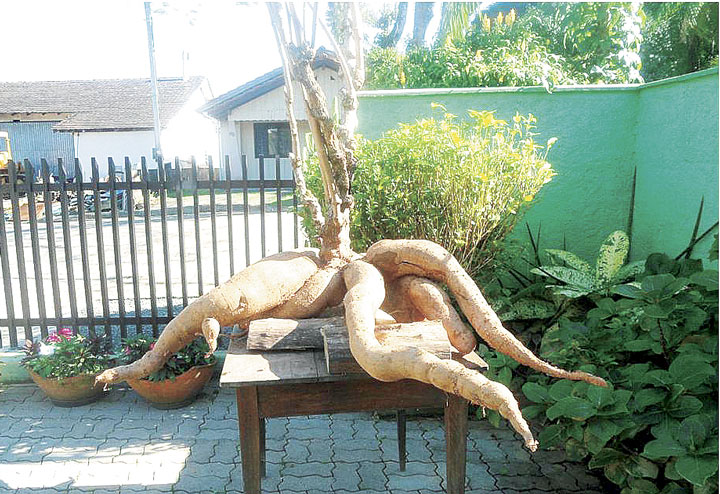 RIO DOS CEDROS – Um morador da cidade de Rio dos Cedros colheu, na última semana, um pé de aipim que pesa 58 quilos. Vitor Agostini, de 70 anos, mora na região central da cidade e cultiva aipim em sua propriadade há quatro anos. Ele conta que tem o costume de cultivar todos os anos, mas nunca colheu um pé tão grande quanto este.
