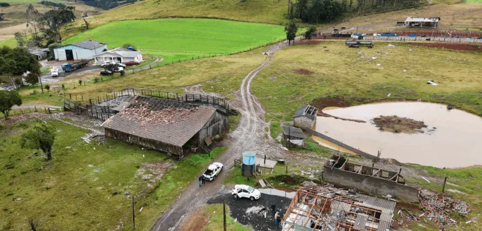 Em nota, a Defesa Civil já havia confirmado um tornado no município de Passos Maia. O sobrevoo com drone na região realizado pela Coordenadoria Regional de Proteção e Defesa Civil – COREDEC revelou danos severos na vegetação, como tombamento de árvores de grande porte, assim como destruição de infraestruturas, incluindo galpões e residências.