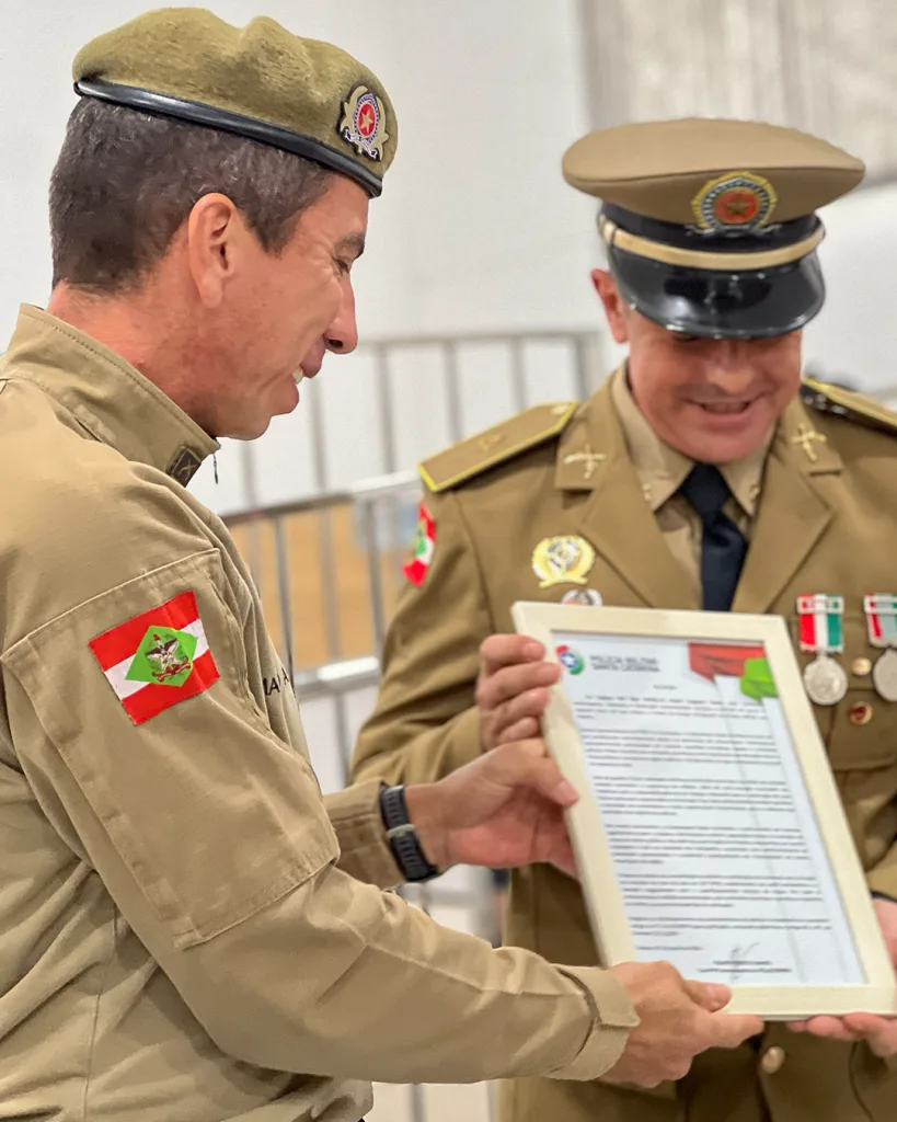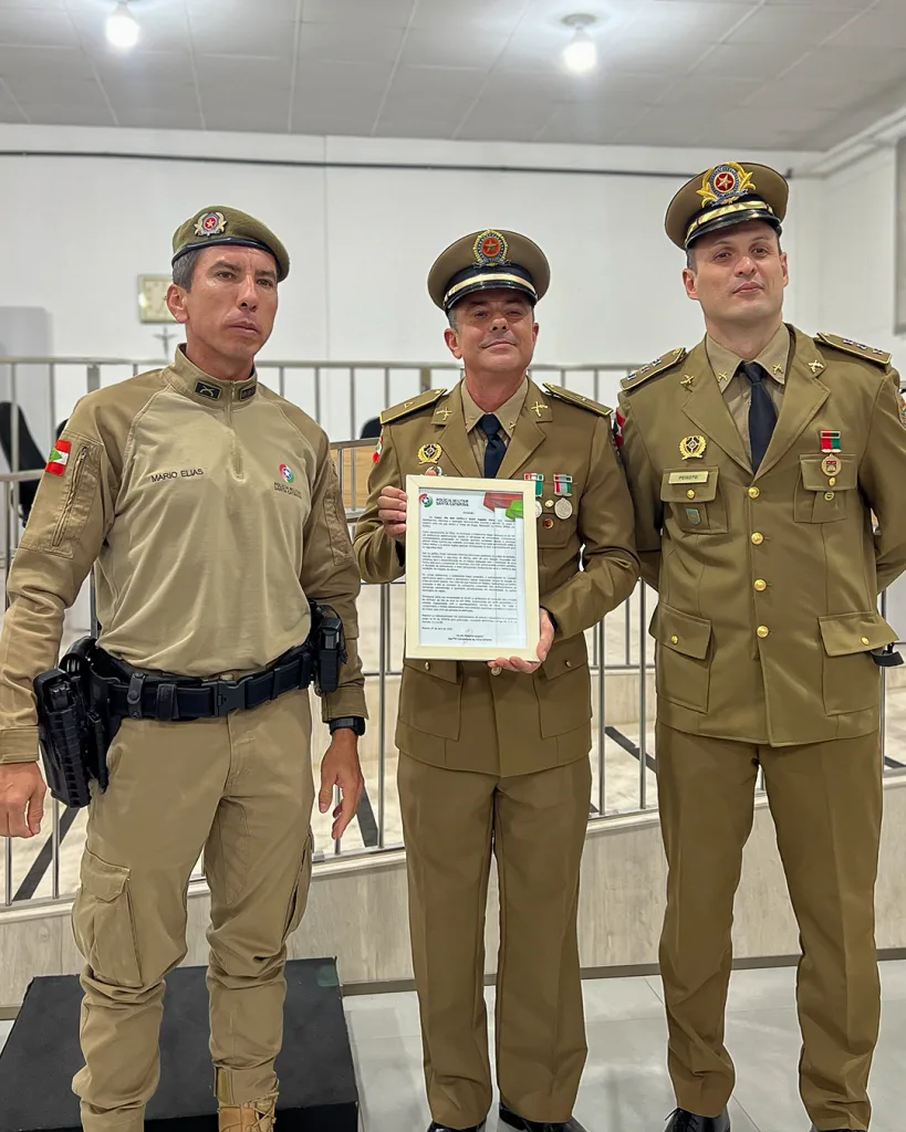 A cerimônia também foi marcada por homenagens ao Subtenente Hasse, que esteve à frente da unidade por aproximadamente quatro anos. Durante esse período, destacou-se pelo fortalecimento do policiamento ostensivo e pela construção de uma relação de confiança com a população de Rodeio.
