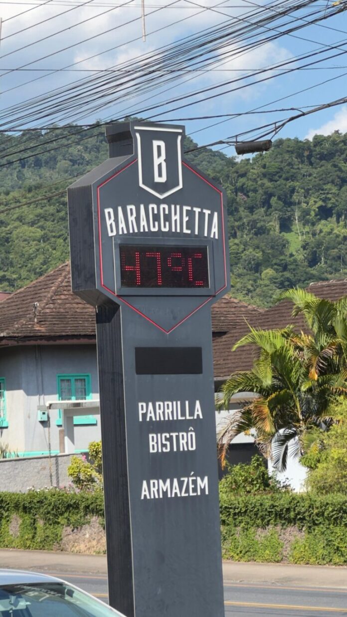 Um termômetro instalado em frente ao Baracchetta Restaurante e Parrilla, no Centro de Pomerode, marcou a temperatura de incríveis 47°C próximo às 16h dessa quarta-feira, dia 12.