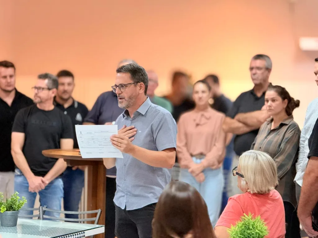 O ato contou com a presença de vereadores, secretários municipais, empresários e moradores da região, que acompanharam o anúncio de mais uma obra de infraestrutura no município.