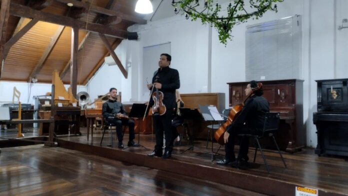 “Uma noite inesquecível, com a casa cheia”. Assim resumiu o professor Roberto Hübner, diretor artístico do Quarteto dos Arcos, a apresentação do Concerto Noturno, realizada no Salão Hammermeister do Museu da Música de Timbó.