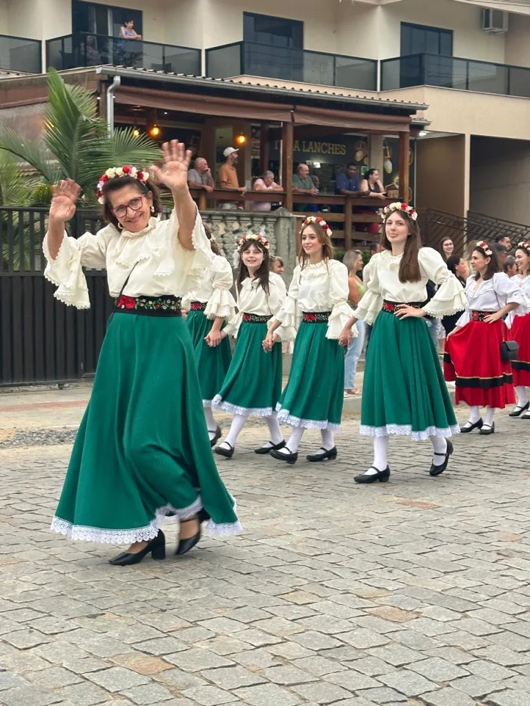 Logo na abertura, a emoção tomou conta do público com as apresentações do Gruppo Folk di Castello Tesino, vindo diretamente do Trentino, do Corpo Bandístico di Albiano, e de grupos locais como Colibri, Santa Notte, Allora Brasil, Cuore Trentino, Natan Vasselai e do tenor Henrique Carlini. Foi uma noite que misturou canto, dança e simbolismo, costurando passado e presente com delicadeza.