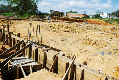 O gerente informa que após a implantação de fundações profundas, foram iniciadas as obras de sapatas, blocos de coroamento e baldrames.