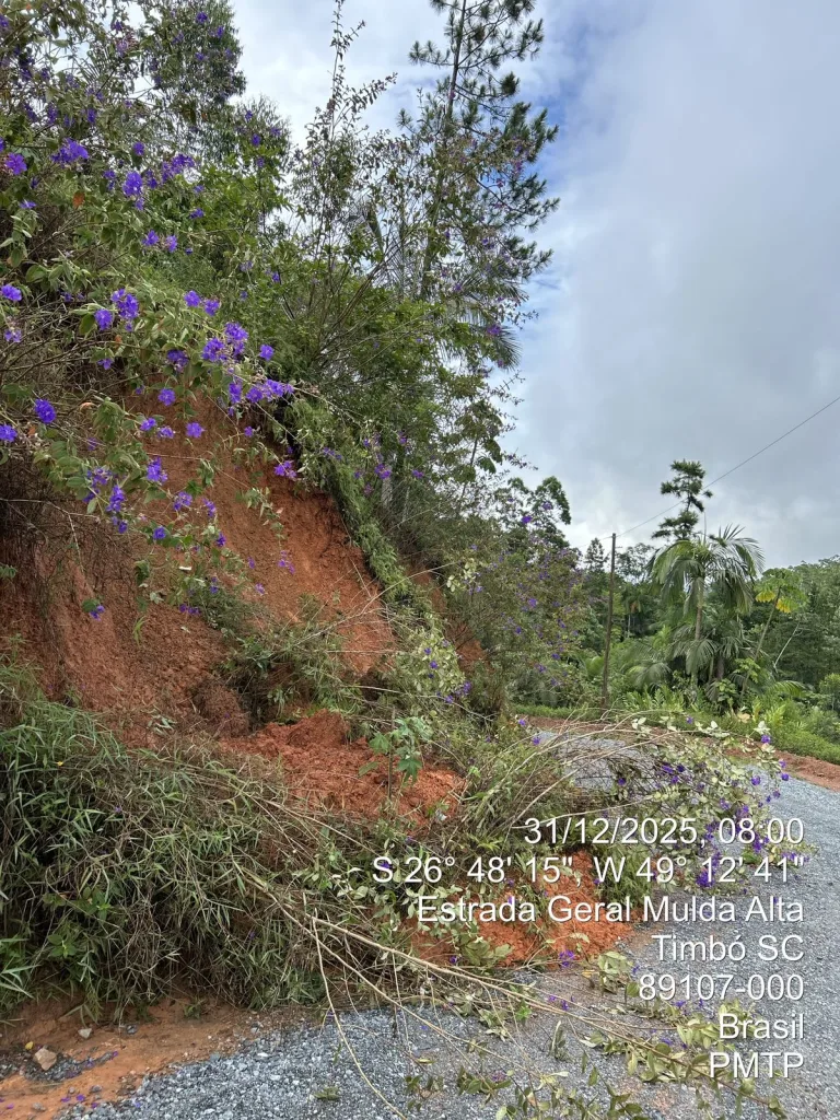 Dois temporais, com rajadas de ventos, raios e um volume de chuvas acima da média, causaram diversos prejuízos e deixando famílias desalojadas, mobilizando a comunidade e a Defesa Civil de Timbó e região. A primeira ocorrência foi na noite de sábado, 27 de dezembro, atingindo alguns bairros, como a Mulde Alta, que foram surpreendidos pela alta do ribeirão e o acúmulo de águas descendo das montanhas, que formam os pequenos vales da localidade. Ruas do Centro de Timbó, bairros Pomeranos, Capitais e Nações, entre outros, também sofreram um teste na tubulação de águas pluviais, que foi incapaz de escoar o volume das chuvas.