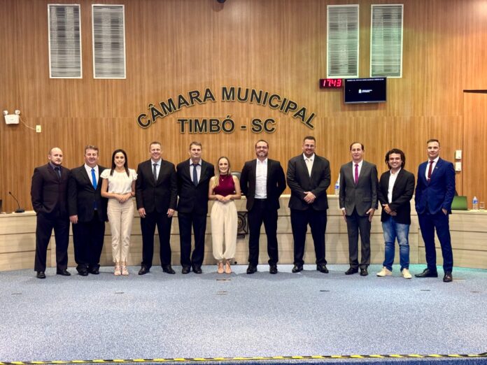 A Câmara de Vereadores de Timbó foi palco de uma Sessão Solene especial na noite de terça-feira, dia 25 de março, em comemoração aos 91 anos de Emancipação Política do município. A solenidade reuniu autoridades, vereadores e representantes da comunidade para celebrar a história e o desenvolvimento da cidade.