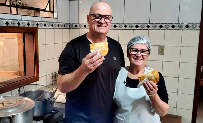 Laudila compartilha que começou a fazer pastéis ao lado da sogra, Edith Hordina, que faleceu há quatro meses. “Quando eles trocaram a casa pelo salão, há 50 anos, o Nelson tinha 11 anos. Iniciaram com bailes e ela começou a fazer pastéis. Cada ajudante dava uma dica, como adicionar palmito, pimentão ou fazer um molho especial. Ela reuniu todas essas sugestões e encontrou a receita perfeita”.