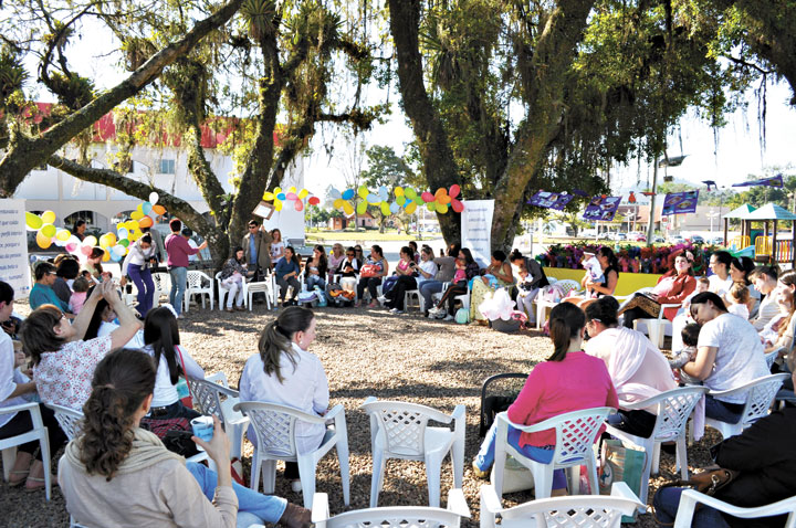 Aproximadamente 60 mulheres, entre mamães com seus bebês e futuras mamães, estiveram presente no evento que contou também com apresentações de dança, música e cantigas para os bebês, além de depoimentos de várias mamães, que buscaram dividir seus problemas, suas angustias e conquistas com um grupo maior.